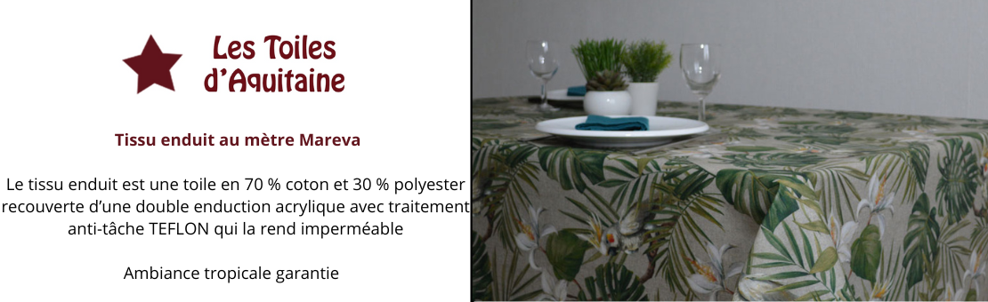 Spécialistes de la toile cirée, du tissu enduit au mètre et du lin enduit, nous vous proposons une large gamme de matières faciles d’entretien et résistantes, disponibles en grande largeur pour s’adapter à toutes vos envies déco.