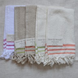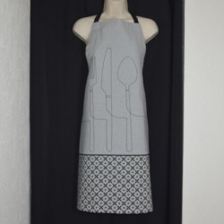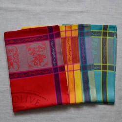 Toute une gamme de tabliers : coton, enduit, humoristique, régionaux mais aussi des serviettes de tables unies, des grands torchons et des sets de sets en pvc tressé