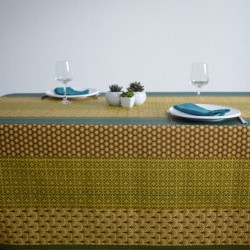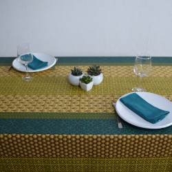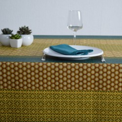 Toile enduite au mètre Azora, aux motifs géométriques diverses et aux coloris tendance sur votre table pour un aspect moderne...