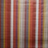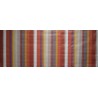 Toile cirée au mètre Kirsten, un bayadère aux rayures rouges, moutarde, taupe et blanches...