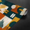 Toile cirée au mètre Germain, feuilles stylisées et formes abstraites