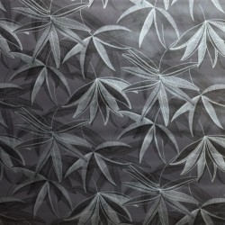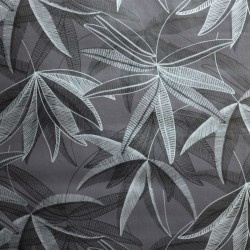 Toile cirée au mètre Marta, des feuilles aux reflets argentés sur fond anthracite pour un aspect chic et sobre sur votre table ...